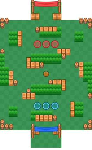 De kaart bestaat uit veel lange en smalle muurplaatsingen en grote struikclusters die verspreid liggen. De linker en rechterkant bestaan uit drie struikclusters en twee rijen muren. De middelste baan bestaat uit twee kleine muur en struikplekken en in de buurt van het midden twee grote struik en muurclusters met de bal direct in het midden. De doelen hebben een opening van drie tegels breed, maar dit kan worden vergroot tot zeven met muurbrekende mogelijkheden. De kaart is diagonaal symmetrisch.
