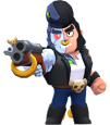 - Самым сложным для убийства противником на ближней дистанции для вас будет Шелли. Это происходит из-за того, что у неё больше дальность стрельбы и перезарядка быстрее, ну, и конечно, у неё очень мощный Супер. Имейте ввиду, что если в вас полетит Супер Шелли, то скорее всего вы умрёте — даже вторая Звёздная сила вам не особо поможет. Поэтому важной задачей для вас является атаковать первым — так вы будете иметь больше шансов на победу. Шелли вы убьёте за 2 выстрела, но если у неё будет заряженная «Аптечка», то придется сделать 3 выстрела (скорее всего, она за это время уже накопит на Супер, так что, как только вам снимет 3/4 или — в крайнем случае — 1/2 максимального здоровья, используйте первый гаджет). Если у вас много кубиков усилений, то вы также сможете её убить.