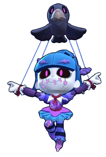 3 секунд может использовать Супер повторно, тем самым вернувшись в исходную точку и нанеся урон при исчезновении. Её первый гаджет «Длинные нити» увеличивает радиус зарядки Супера у Особенности на