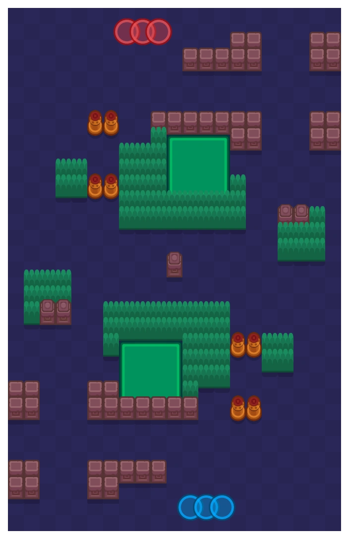 Сверху и снизу данной карты находятся две структуры, состоящие из квадратного озера с водой, окружённого большим количеством кустов, стен и блоков. Между ними, в центре карты, расположена пустая область для сражений. Дизайн Океанариума.