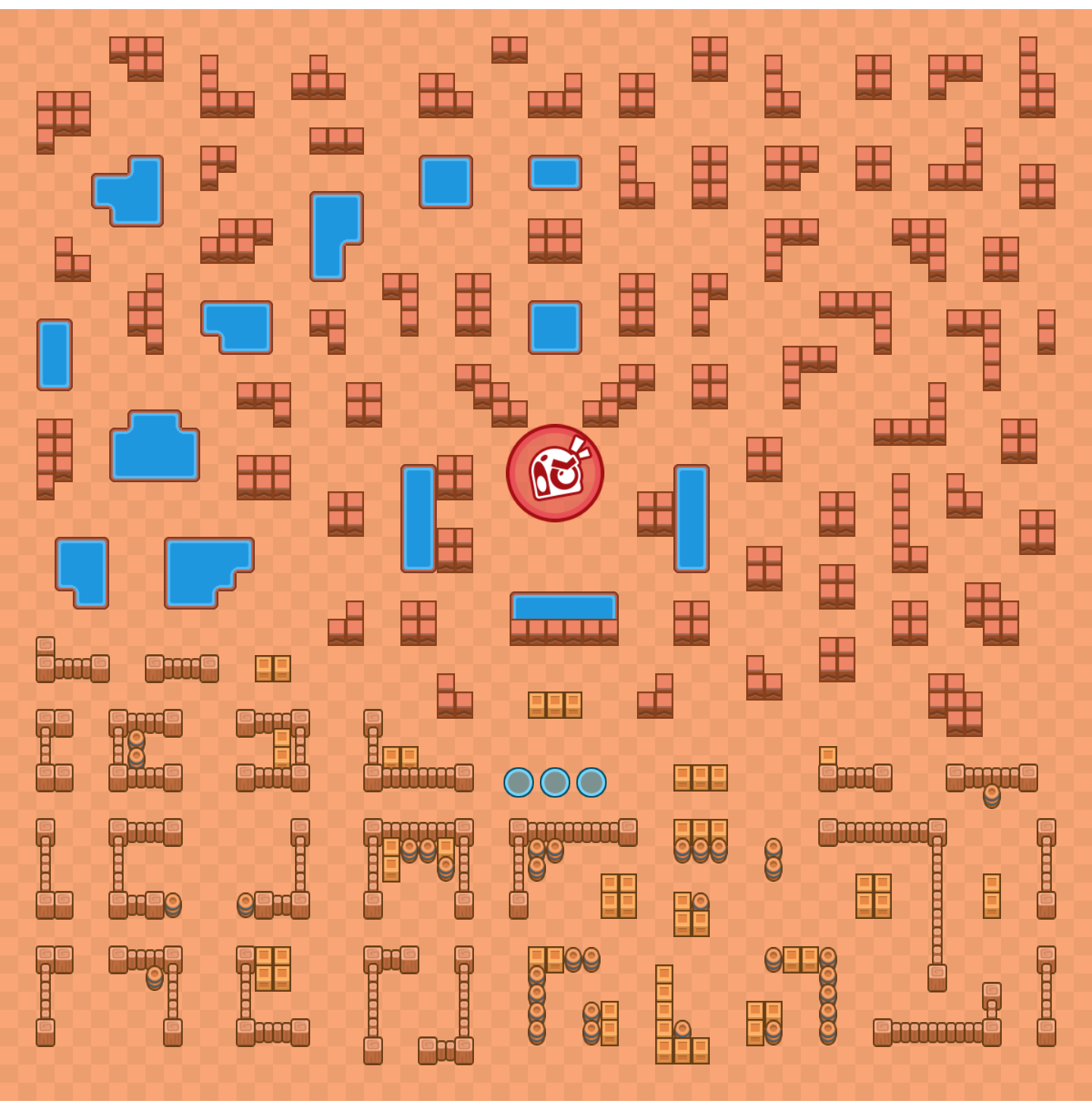 По центру расположен Робо-босс, чуть дальше-начальная позиция бойцов. В верхней части карты огромное количество стен, за которыми можно прятаться; в левой верхней части — большое количество озёр, а внизу вся карта состоит из "закоулков", по большей части состоящих из стен и заборов. Дизайн Дикого Запада.