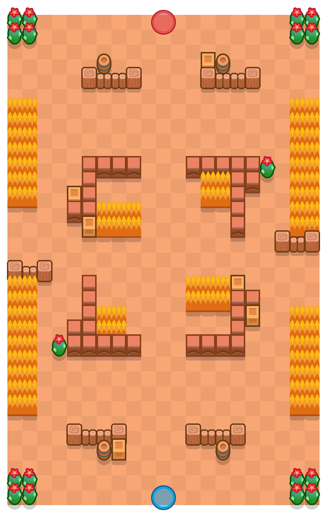 Карта имеет достаточно открытое пространство. Возле спавна находится забор с бочками и деревянными ящиками. По флангам есть кусты, в центре карты квадрат из стен с проходами в него. Дизайн Каньона.