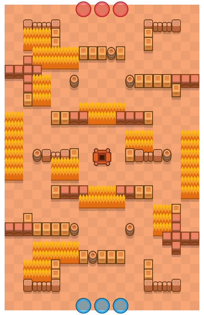 По центру расположена шахта, из которой появляются кристаллы, а по бокам — точки возрождения бойцов. Карта содержит большое количество стен по горизонтали. Стороны открыты, большую часть составляют вертикальные кусты. Рядом с каждой командой есть Г-образные стены и заборы с небольшими отверстиями, которые бойцы могут использовать в качестве защиты. Дизайн Зимы.