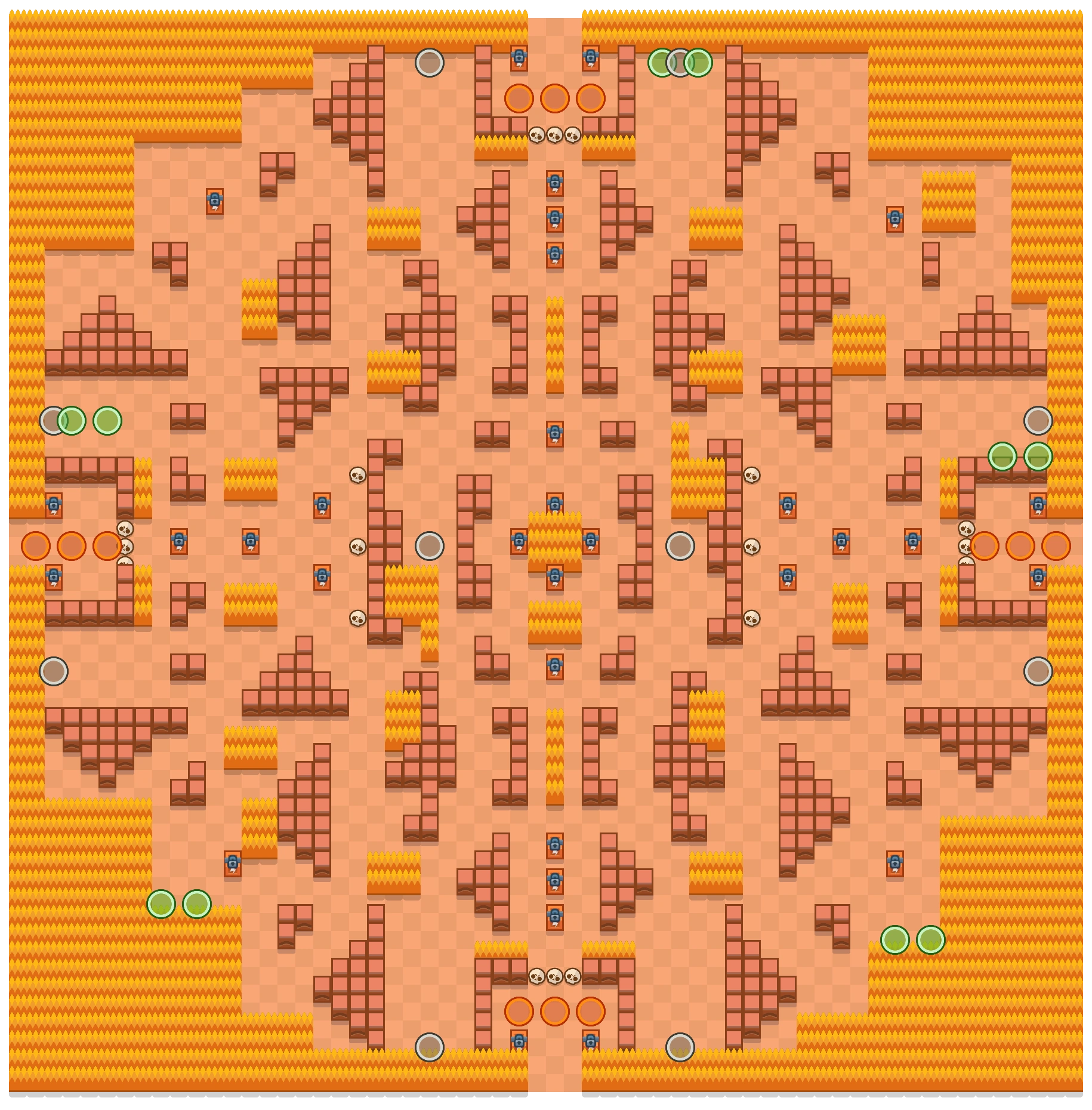 • Если вы появились на краю карты, не стоит идти за ящиками рядом с кустами (если у вас не "кустовые" бойцы), так как ваш оппонент может внезапно напасть на вас (особенно, если это Шелли или Булл) и убить.