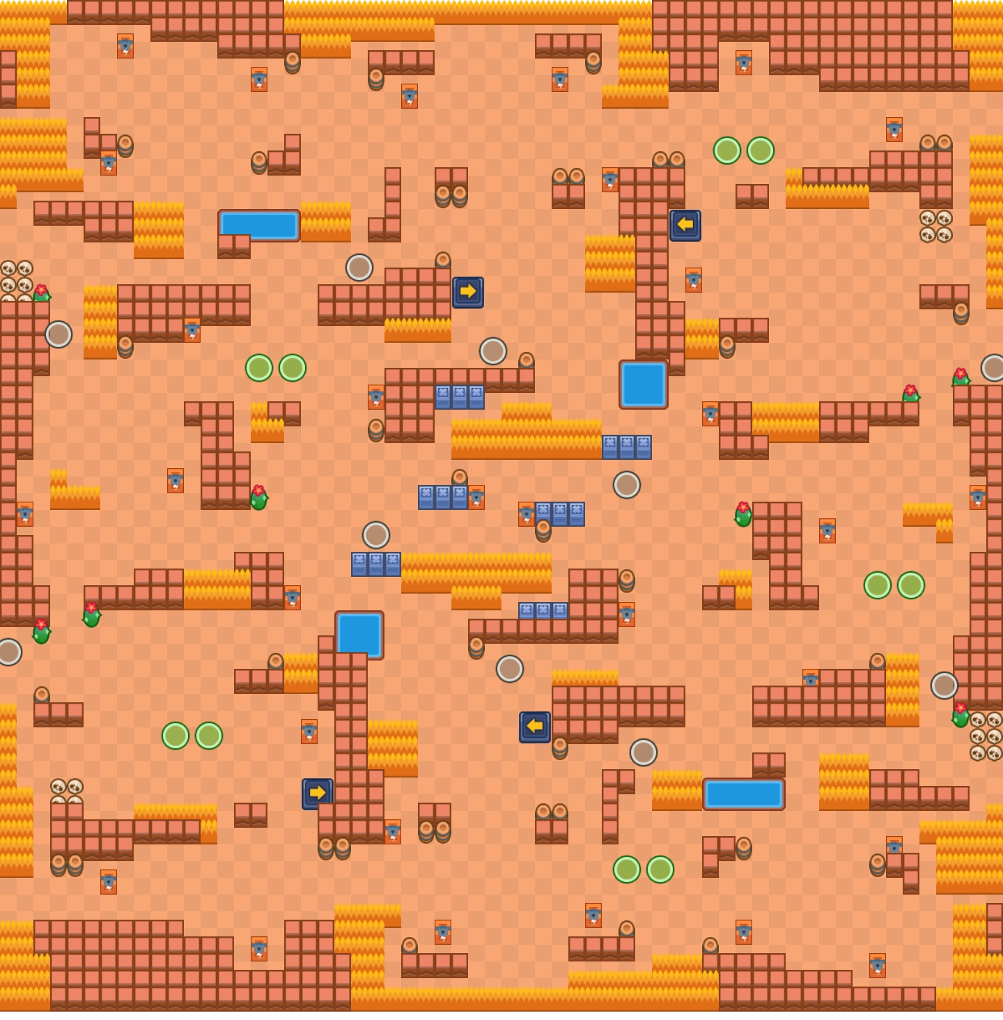 Эта карта полна стенами и кустами. Также есть немного воды и неразрушимых стен в центре. А трамплины помогают быстро передвигаться по карте. Дизайн Дикого Запада.