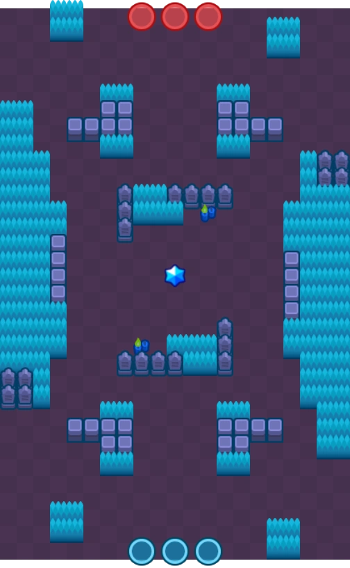 По бокам огромное количество кустов и мало стен. Стены расположены сверху и снизу по бокам, а также по центру, сбоку. В остальном карта ничем не примечательна. Как обычно, посередине звезда, а сверху и снизу — точки возрождения бойцов. Очень похожа на карту Подрыв, но режимы отличаются. Дизайн Морга.