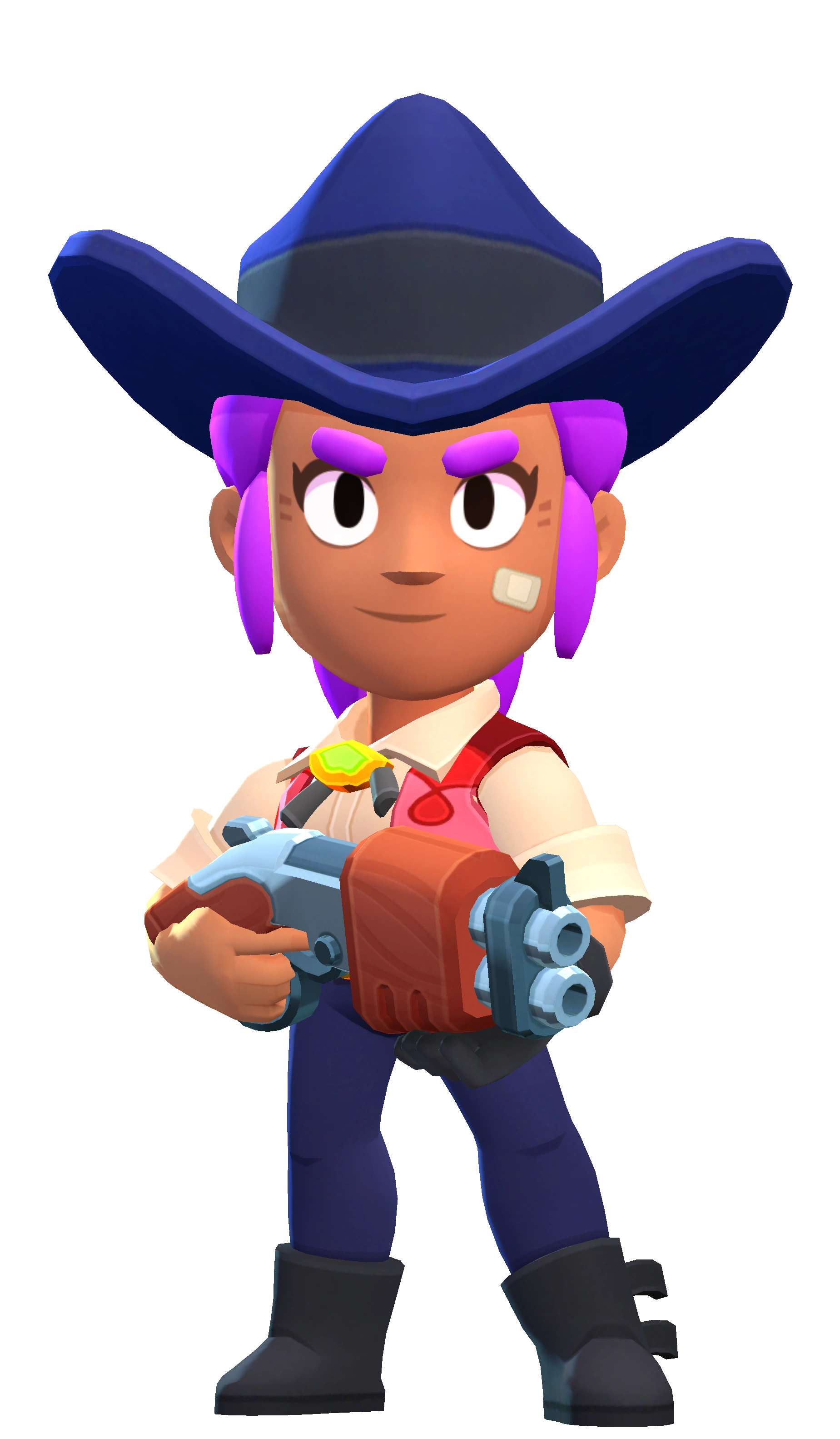 Шелли делает мощный выстрел, который разрушает преграды и отталкивает врагов на небольшую дистанцию. Как и у обычной атаки, урон зависит от того, сколько пуль достигло цели – чем ближе враг, тем больше урон. Супер может отменять другие Суперы.
