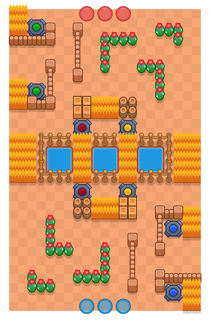Мапа складна за будовою, тут можна помітити, що використовуються всі телепорти, кущі у вигляді 4 мостів. в середині знаходяться 3 водоймища. Тема Банда золотої руки.