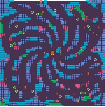 Мапа оформлена у стилі спіральної галактики. У центрі є 2 невеликі кущі і далі безліч стін, кущів та озер, кожні з яких закручені по спіралі від центру та вигнуті за годинниковою стрілкою. Мапа не симетрична, а також на мапі раніше був присутнім модифікатор Енергетичний напій. Дизайн кладовища.