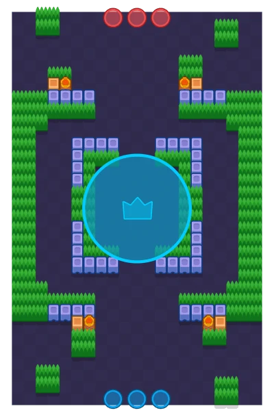 У центрі одна гаряча зона, на стороні точки відродження бійців. Є багато кущів та коробок. Центр оточений стінами та кущами з проходами. Інші кущі знаходяться з боків, лише маленькі скупчення поруч із точками відродження. Ця мапа має дизайн аркади.