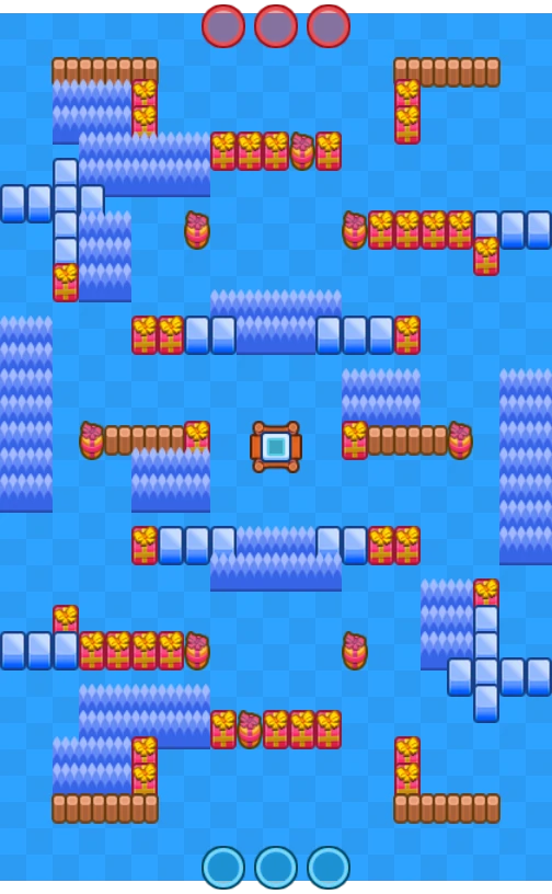 По центру розташований спавн кристалів, а з боків - точки відродження бійців. Мапа містить велику кількість стін по горизонталі. Сторони відкриті, більшу частину становлять вертикальні кущі. Поруч із кожною командою є L-подібні стіни та паркани, з невеликими отворами, які бійці можуть використовувати як захист. Новорічний дизайн.