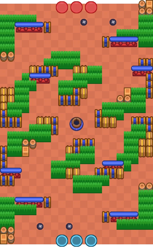- Особливо тут буде корисний Ріко і його Супер, який може діставати ворогів у кущах поруч із центром і завдавати їм багато шкоди.