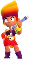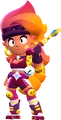 Amber is a Legendary Brawler that has moderate health and a high damage output. She attacks by shooting a continuous, long-ranged stream of fire. Amber's Super is a flask of fire fluid that creates a flammable puddle on the ground which can be ignited by her attack, and when ignited, it sets enemies that are in it on fire to burn over time. Amber's first Gadget, Fire Starters, momentarily increases her movement speed while she spills a trail of fire fluid behind her that behaves identically to her Super's puddle. Her second Gadget, Dancing Flames, she creates three fireballs that revolve around herself and each deal damage. Her Mythic Gear, Sticky Oil, slows the enemies down that are in the fire fluid puddles. Her first Star Power, Wild Flames, allows for two Super fire puddles to be placed down simultaneously and to passively charge her Super when standing near her fire fluid. Her second Star Power, Scorchin' Siphon, increases her reload speed when she's near her fire fluid. Her Hypercharge, Oil Spill, increases the radius for her flammable puddle from her Super which can be ignited by her attack, and when ignited, it sets enemies that are in it on fire to burn over time.