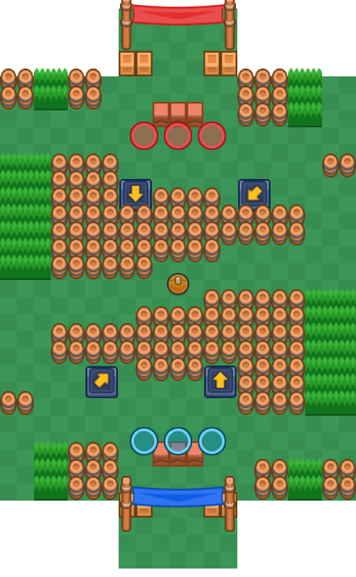 This map is known for its unusual number of barrels and the use of launch pads. There are bushes near the bottom right and top left of the map, and there are two large lumps of barrels near the center that form a tight lane to go through. The map is diagonally symmetrical.