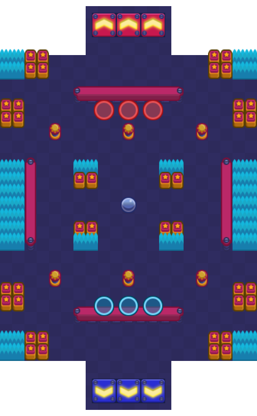 • Do not be tempted to use the bumpers to score a goal without breaking the walls behind them first. It is almost impossible to make a goal this way. Instead, either ignore the bumpers, or break the walls behind them with Brawlers like Dynamike, Colt, Bull, Brock, Chester, El Primo, Frank, Grom, Piper, Nani, Shelly, Tick, Tara, etc. to make it easier to score.
