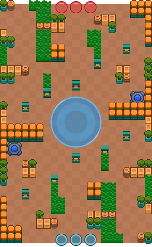 • The center of the map is fairly open mid-ranged tanks like Frank, Bull, Darryl, Jacky, and Ash paired with healers can do well on the center. They can also take the teleporters on the left of the map to apply pressure on the enemy team from behind.