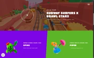 Subway Surfers World Tour: Brawl Stars Season is a crossover update in the endless runner mobile game Subway Surfers. The update features a new destination, new competitive racing game mode "Brawl Stars Showdown", 6 new Surfers, 6 new portraits for all the Brawlers, a Spike frame, and 2 new Profile Badges.
